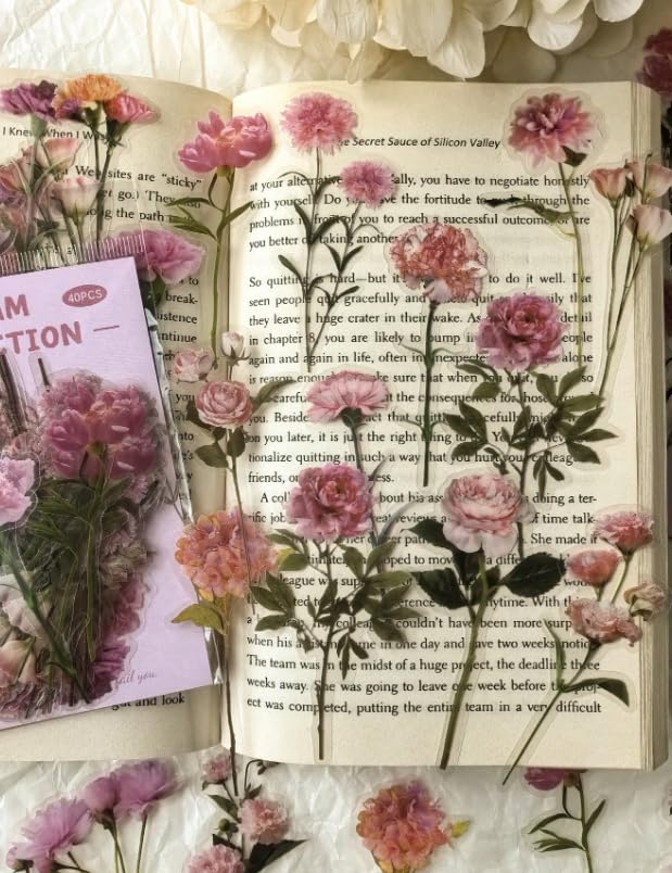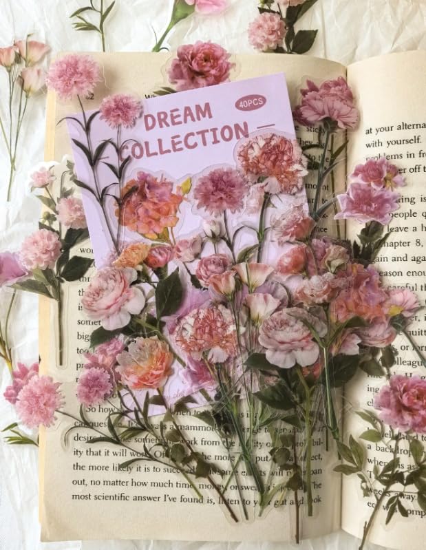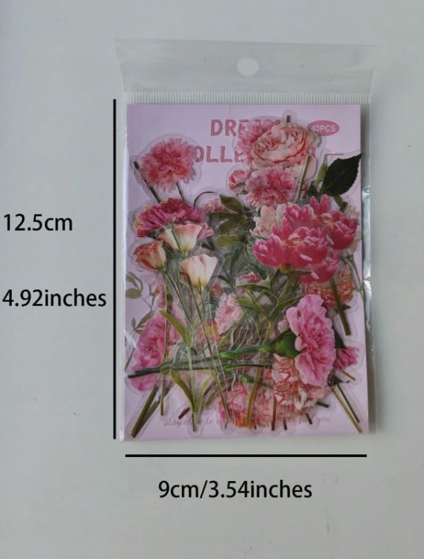 Generic - ملصقات زهور وردية رومانسية عتيقة، 40 قطعة، تصميم زهرة الاقحوان الفاوانيا، لسجل القصاصات والمخططات والمذكرات ومستلزمات القرطاسية