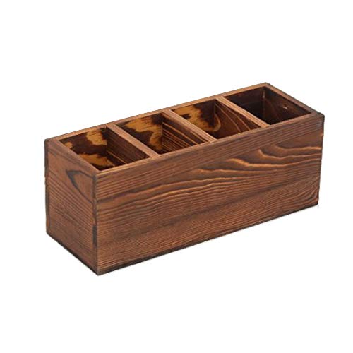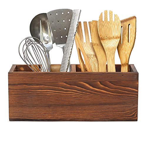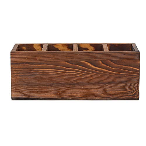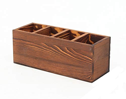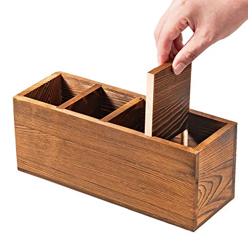- علبة أدوات المائدة هذه مصنوعة من الخشب بلمسة نهائية محروقة على الطراز الريفي تتوافق بشكل جيد مع نمط معظم المطابخ، مما يوفر لمسة ريفية مريحة سيحبها أي شخص بالتأكيد!