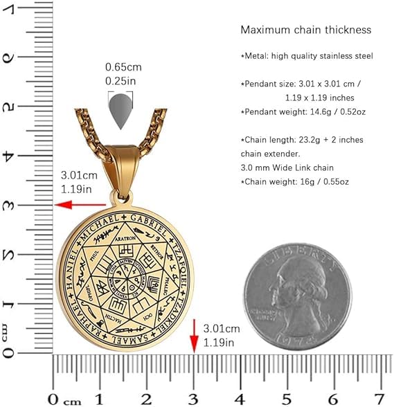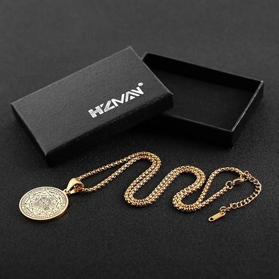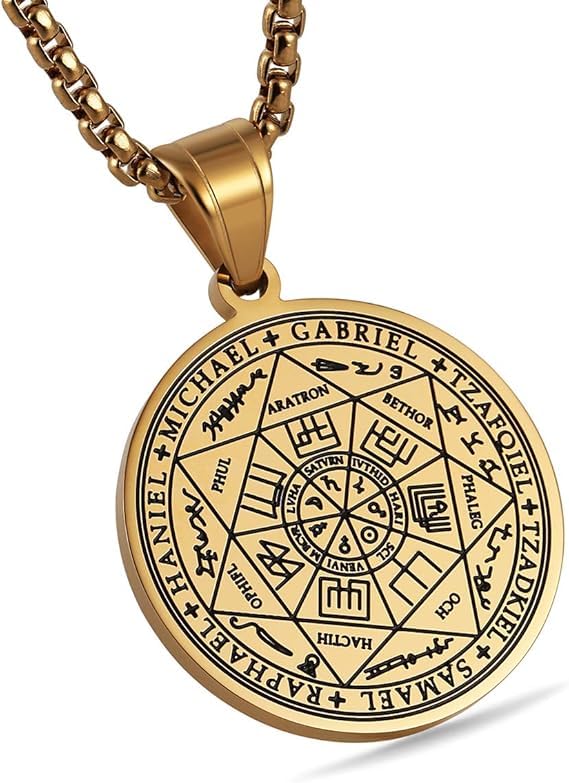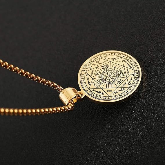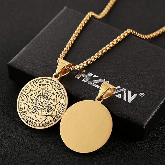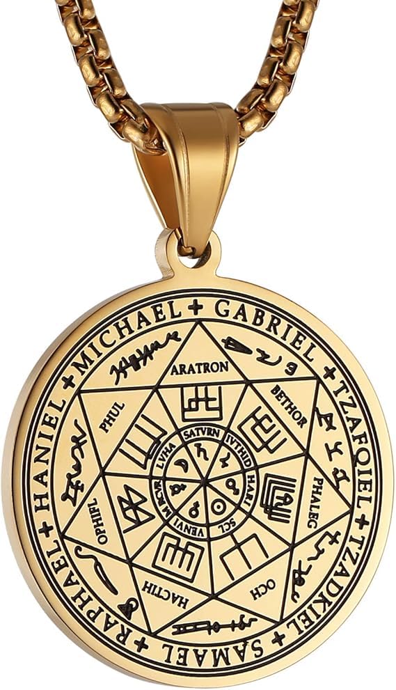 fashion mania - Vintage Stainless Steel The Seal of The Seven Archangels Pendant Necklaces 22+2 Chain Suitable As a Gift-Gold