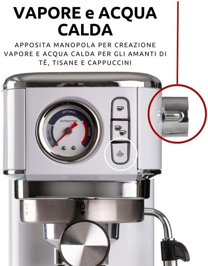 - Precise control: equipped with analog indicator to monitor the water temperature and ensure the best coffee extraction.
