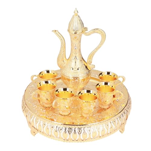 Excefore - طقم ابريق قهوة تركي عتيق، طقم شاي تركي مع 6 اكواب قهوة، طقم ابريق شاي وكوب لشخص واحد، مجموعة تقديم الشاي لتزيين طاولة الشاي المنزلية، هدية الزفاف، حفلة الشاي المنزلية