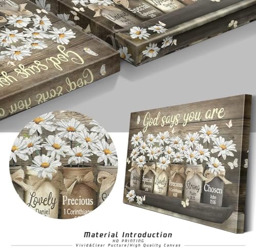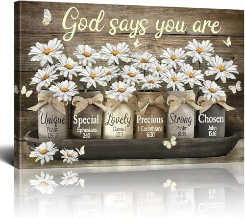 Lokfvda - لوحة فنية جدارية عتيقة على شكل فراشة وزهرة الاقحوان مسيحية للكتاب المقدس صورة الله يقول يو ار ديكور حائط لغرفة المعيشة وغرفة النوم والحمام والمكتب منزلي مؤطر جاهز للتعليق 12 متعدد الألوان