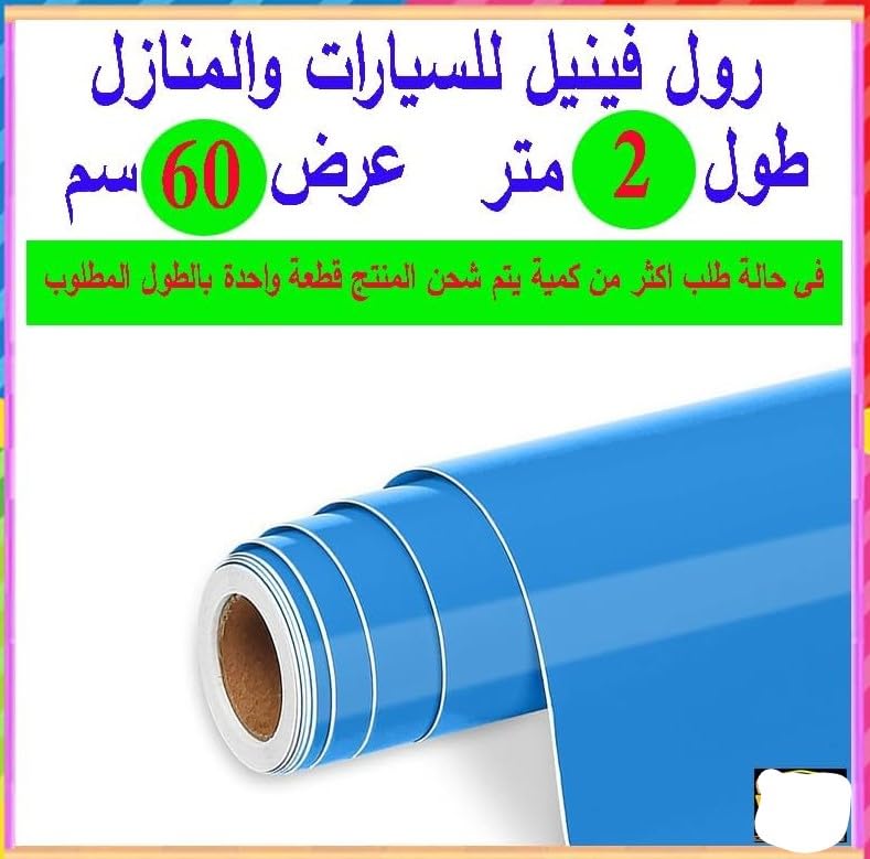 Generic - رول فينيل ذاتى اللصق ، مناسب للسيارات والمطبخ والنوافذ و الاجهزة متعدد الاغراض ( أزرق كريستالي لامع ، مقاس 2 متر عرض 60 سم ) ---- من نسمه ستور