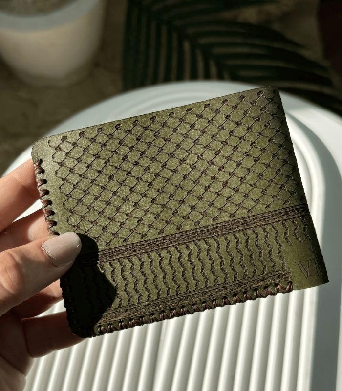 Generic - Viola's Line محفظة فلسطين للرجال من الجلد الطبيعي، محفظة قابلة للطي بتصميم منقوش (Royal Green)