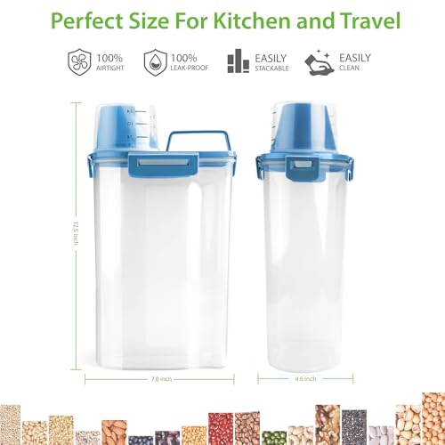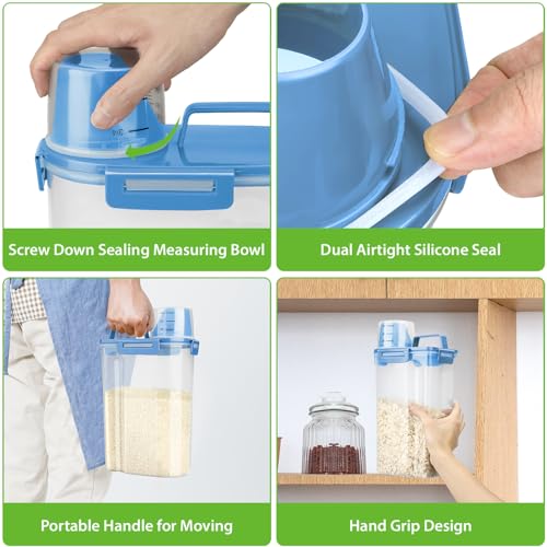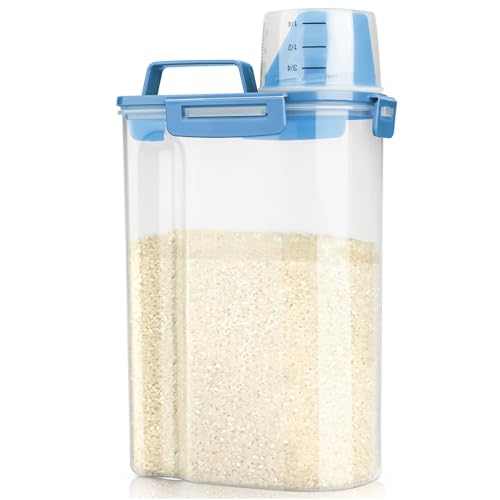 Viretec - Rice Airtight Storage Container, 2.8KG Cereal Dry Food Flour Bin, Pet Dog Cat Food Dispenser with Measuring Cup, BPA Free Clear Plastic Kitchen and Pantry Organization Bin for Sugar, Pasta