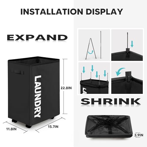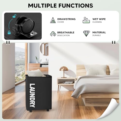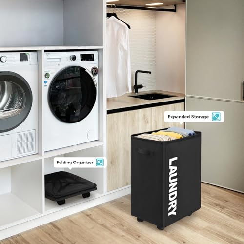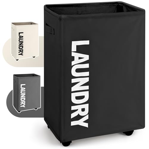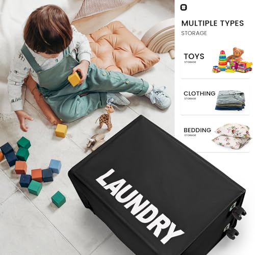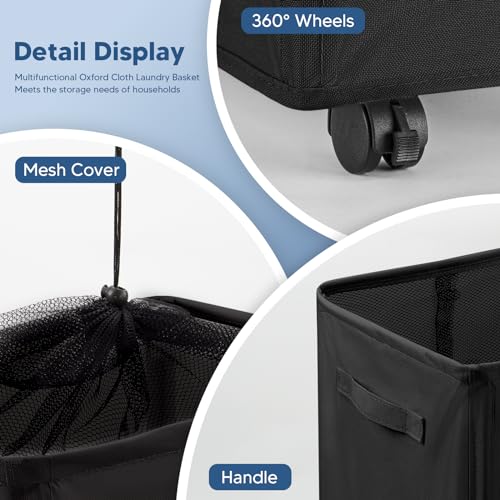 Virklyee - Laundry Basket with Wheels 63L Laundry Basket Dirty Oxford Fabric Large Laundry Basket with Handle Foldable Laundry Basket, Storing Toys and Blankets (Black)