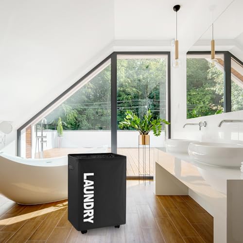- HIGH QUALITY MATERIALS The 63L high capacity linen basket is made of high density 600D Oxford fabric, with a built-in waterproof PE coating on the inner lining, effectively moisture and dust resistant, durable and more convenient to wash.