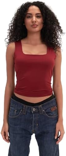 VIRMO - Women's Sleeveless Two Layers Square Neck Fashion Fashion Lightweight Comfortable Casual Tops BT007 BRG