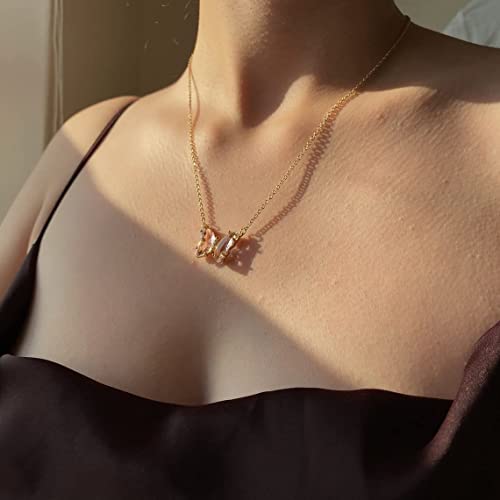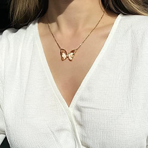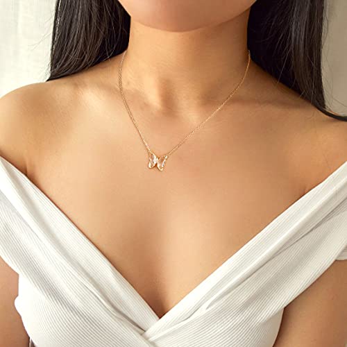 VIROMY - Viromy Dainty Crystal Butterfly Necklace for Women 18K Gold Plated Minimalist White Butterfly Necklace Cubic Zirconia Butterfly Pendant Cute Crystal Butterfly Necklaces Gifts for Girls