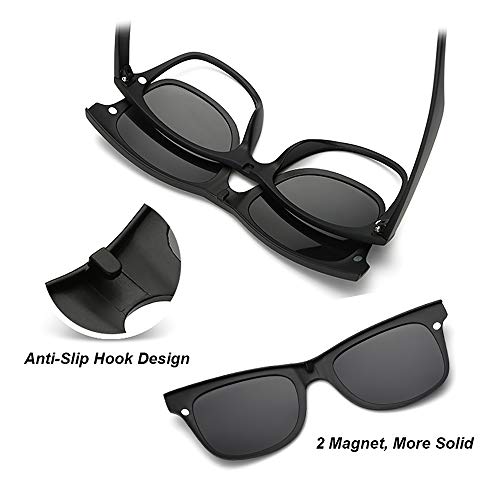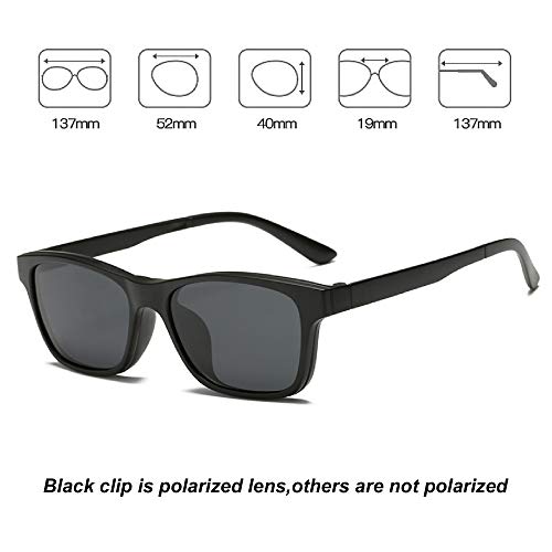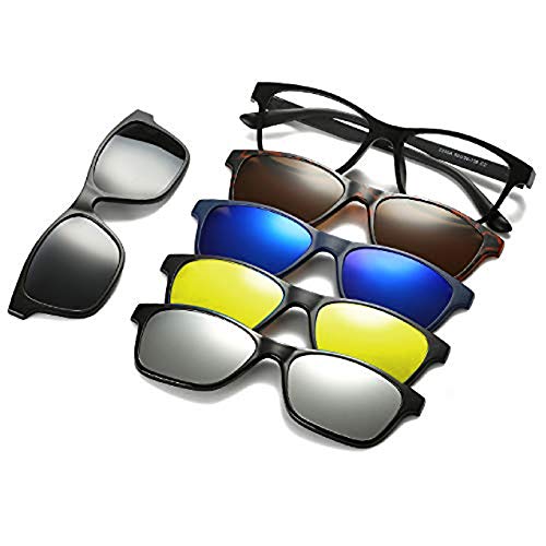 Visions India - 6 In 1 Polarized Magnetic Clipon Rectangular UV Protected Sunglasses Eye Glasses With 400 Night Vision Men Women Unisex