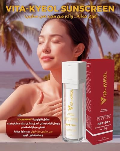 VITA-KYEOL - واقي الشمس فيتا-كيول مع حماية متطورة من الأشعة فوق البنفسجية بعامل حماية واسع النطاق بتركيبة غير دهنية خفيفة الوزن ومناسبة لجميع أنواع البشرة مع أكسيد الزنك وثاني أكسيد التيتانيوم 1+1
