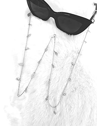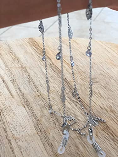 Generic - Vittoria Sparks Classy Mask and Eyeglass Chain Holder - Leaves and Crystal Charms Collection - (Silver)