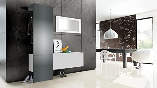 - التصميم: هيكل رف المعاطف في الردهة باللون الأبيض المطفي واللوحة المصنوعة من الحرير الجرافيت المطفي يضمن جوًا عصريًا ومنزليًا. أو اختر التصميم المناسب من بين العديد من تركيبات الألوان الأخرى.