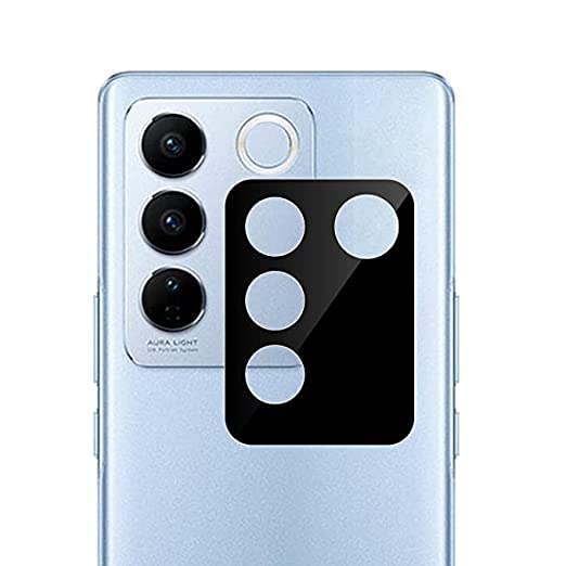 VM - PROTEC - Compatible with Black Back Camera Lens Protector Tempered Glass - Full Camera Coverage with Easy Installation Kit (VIVO V27E, Camera Lens)