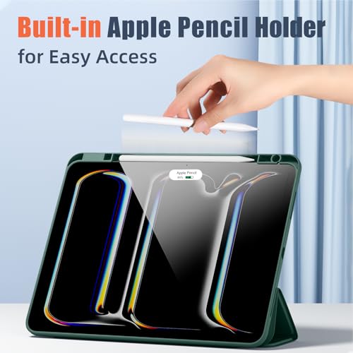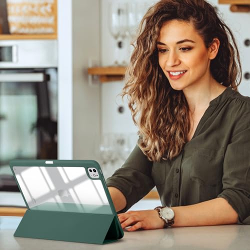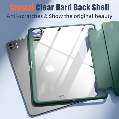 Vobafe - Vobafe Transparent Case Compatible with iPad Pro 13 Inch M4 2024 with Pencil Holder, Shockproof Bumper TPU Cover with Clear Back Shell, Auto Wake/Sleep, Pine Green