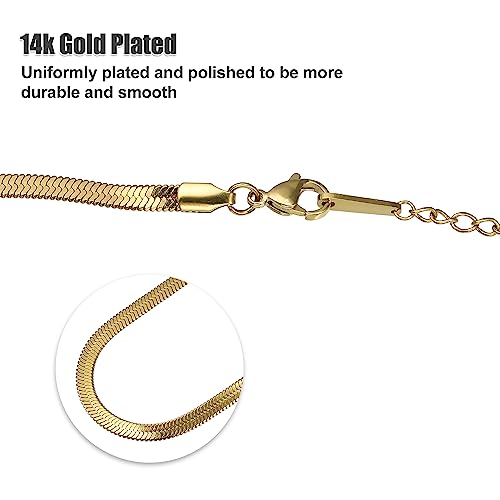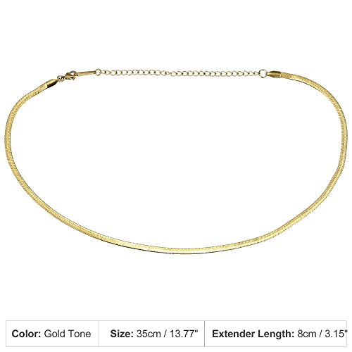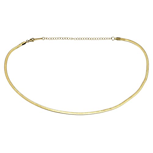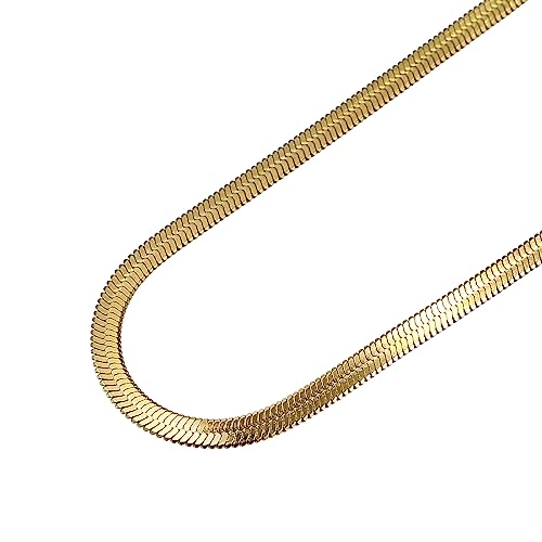VOCOSTE - قلادة ذهبية اللون للنساء من فوكوست سلسلة ثعبان مسطحة مطلية بالذهب عيار 14 قيراط 35 سم ستانلس ستيل بدون احجار كريمة