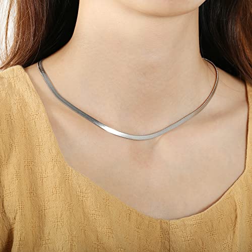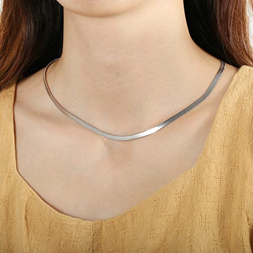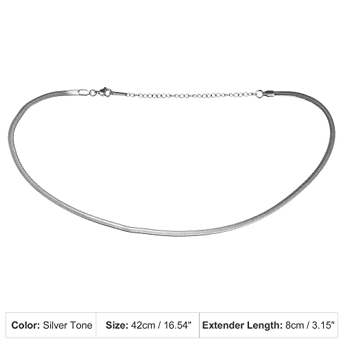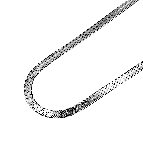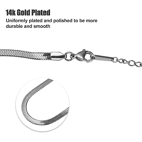 VOCOSTE - طوق ضيق بلون ذهبي مطلي بالذهب عيار 14 قيراط، بتصميم ثعبان مسطح للنساء من فوكوست، بطول 42 سم, 42cm, ستانلس ستيل, بدون أحجار كريمة