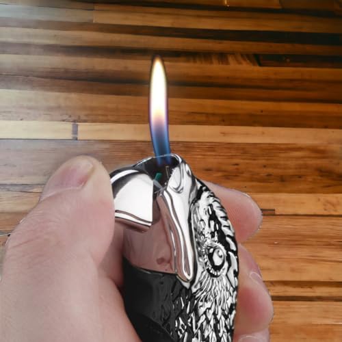 - [Creative Lighter] This is a cool lighter with an eagle head shape, unique charm, very eye-catching and domineering, giving people a different feeling. The hawk-beak ignition, light flame, windproof torch can burn most objects. Making it perfect for outdoor activities such as camping, hiking or BBQ parties.