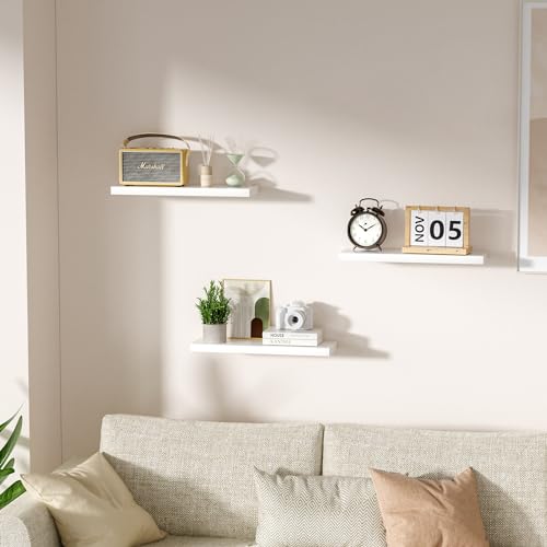 VOGGV - VOGGV White Floating Shelves for Wall, Wall Mounted Shelves with Invisible Brackets, Wall Shelves for Bathroom, Bedroom, Office, Living Room, Kitchen, Shelves for Wall Decor Storage, Set of 3