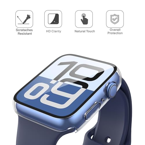 - Anti-Drop Protection: Crafted from PC material and featuring a built-in tempered glass, this case with screen protector for Apple Watch 10 fully covers the front and curved edges of your watch. It provides comprehensive protection, shielding your iWatch from daily scratches, drops, and impacts