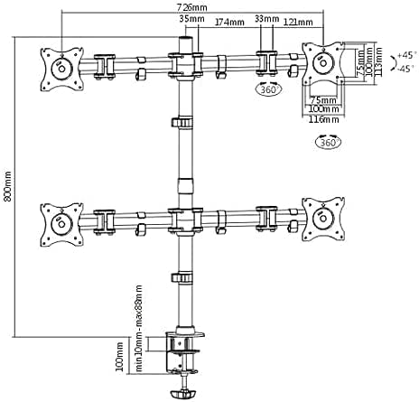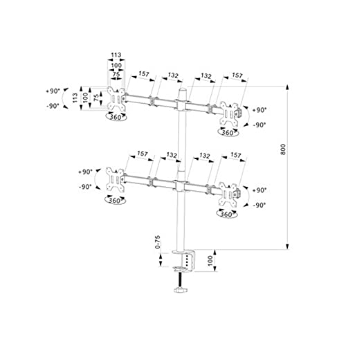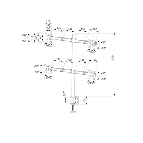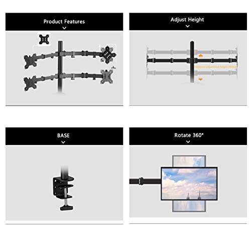 VOL - حامل شاشة مكتبي رباعي قابل للتعديل بالكامل لـ 4 شاشات LCD مقاس 13 انش الى 27 انش، أسود