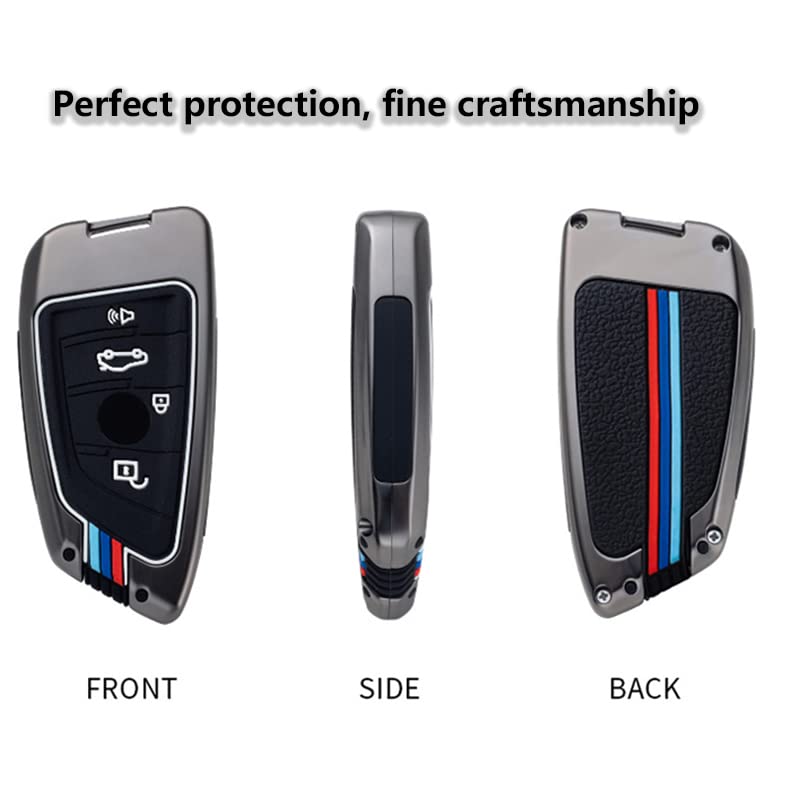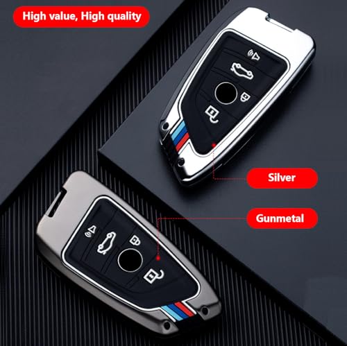 vol - vol TTQK Key Case, Keychain, Metal Shell Cover Compatible for BMW 2 5 6 7 X1 X2 X3 X5 X6 Series Short buckle, Gunmetal