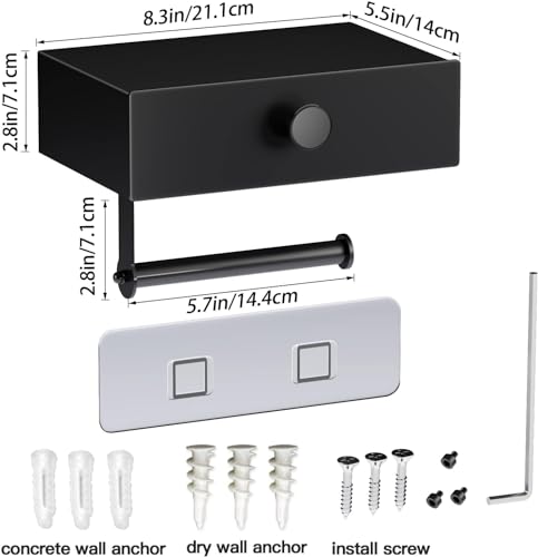 - Durable material: the toilet paper holder is made of durable premium aluminium with matte black finish, waterproof, rust-proof, scratch-resistant. Compared to stainless steel, aluminium is lighter and has better rust and water resistance.