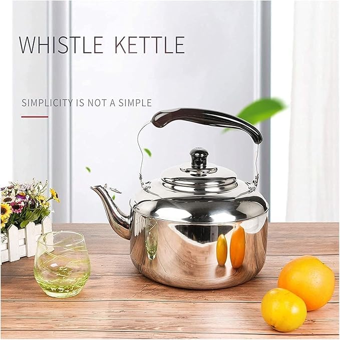 Volura - براد شاي ستانلس ستيل مع صفارة، مقبض بتصميم لطيف، 2 لتر، للبوتاجاز الغاز والكهربائي والحث