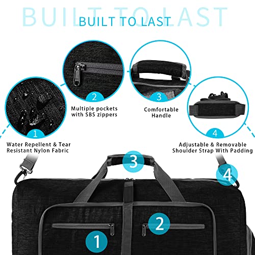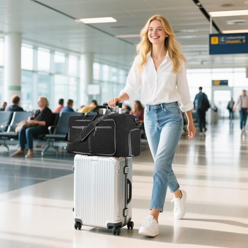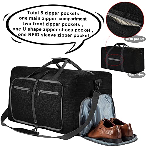 Vomgomfom - شنطة دفل للسفر للرجال، شنطة دفل للسفر قابلة للطي بسعة 65 لتر مع جيب للاحذية، شنطة ليلية للرجال والنساء مقاومة للماء والتمزق