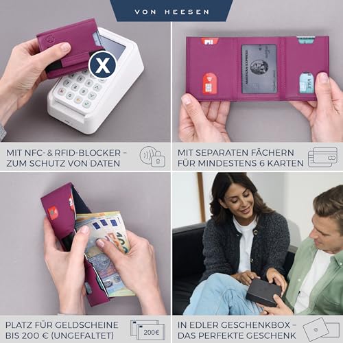 VON HEESEN - VON HEESEN® Slim Wallet with Coin Compartment, Card Case with RFID Protection, Up to 12 Cards, Mini Wallet, Leather Wallet for Men and Women, Small Wallet