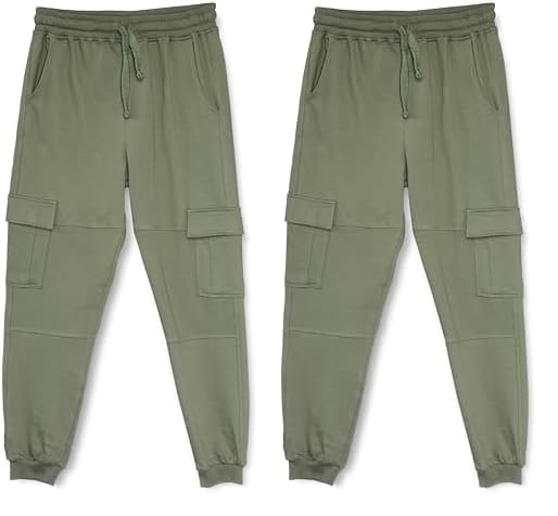 VONKEL - بنطلون رياضي كاجوال من القطن بجيوب للاولاد من فونكيل، ارمي، 9 (عبوة من قطعتين)