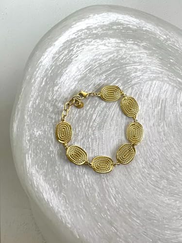 VOOR - سوار انيق مطلي بالذهب من فور، من الستانلس ستيل، سلسلة بحلقات بيضاوية، نمط منسوج، مقاوم للماء، لمسة نهائية خالية من البهتان