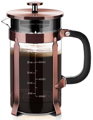 VOSFEEL - ماكينة تحضير القهوة الفرنسية من فوسفيل مصنوعة زجاج البوروسيليكات وآمنة للاستخدام في غسالة الصحون لون برونزي سعة 350 مل