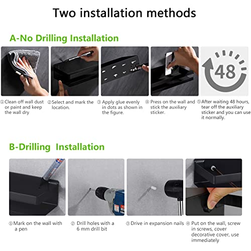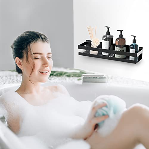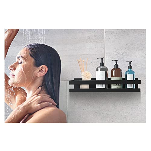- ★【Large size is more practical】The 30 cm long shower shelf without drilling can be used in black and provides enough storage space for shampoo, shower gel, facial cleanser and other toiletries.