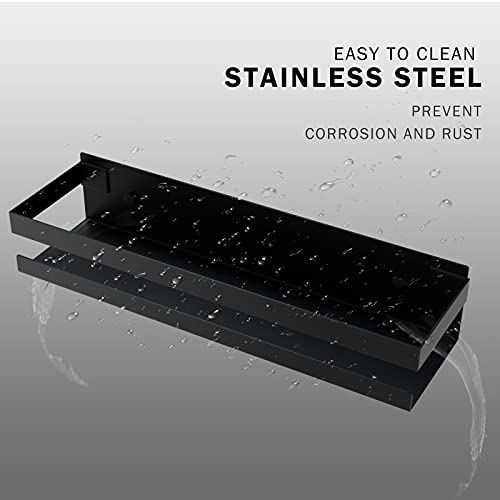 VOSIGLIA - Shower Shelf Black Shower Gel Holder Shower Shelf Shower Basket No Drilling Shampoo Holder for Shower Black Matt Stainless Steel 30 cm