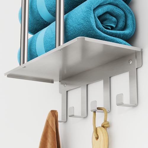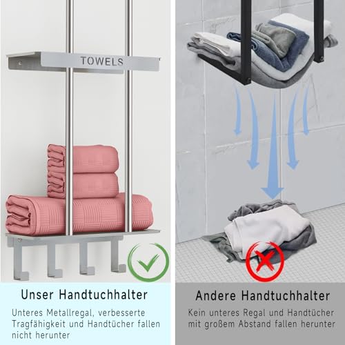 - 【4 Hooks Design】: this towel rack bathroom has 4 hooks at the bottom, which make it easy to separate wet and dry towels, and can also hang bath bombs, combs, clothes, etc. Provide more storage space for the bathroom and keep order and order.