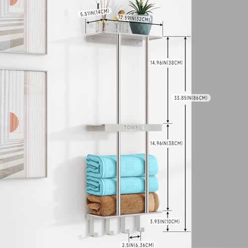 - 【Thoughtful design with middle shelves】: unlike other traditional towel rack without intermediate spacer layer. Our bathroom towel storage has a medium metal shelf in which towels of different sizes can be stored separately, so there is more space for small towels or items. Will not collapse or fall out.
