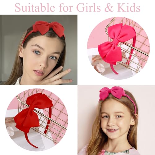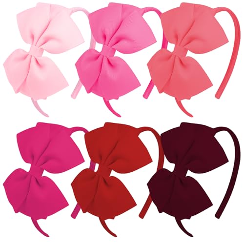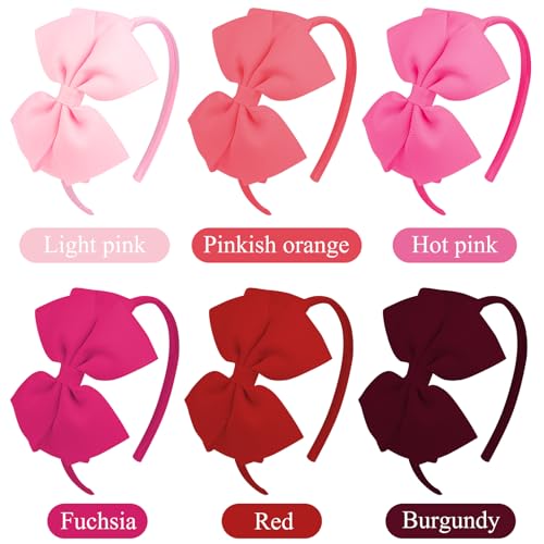 Vovii - طوق رأس على شكل فيونكة للبنات من فوفي (مجموعة من 6 قطع)، لون أحمر، مقاس واحد يناسب الجميع، طوق للأطفال الصغار والمراهقين