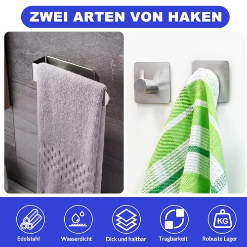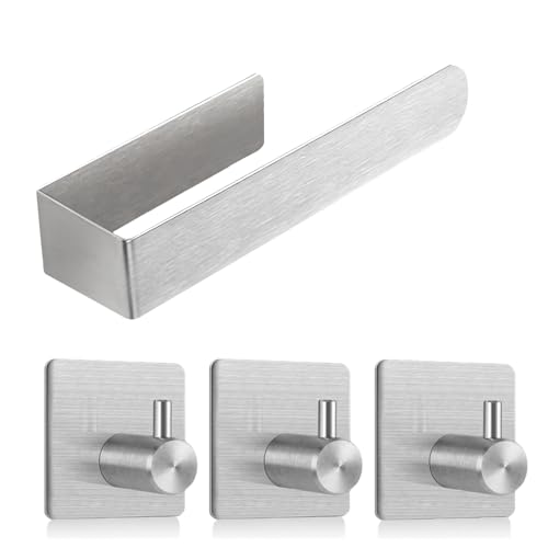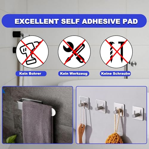 Voxisroma - حامل مناشف الحمام بدون ثقب من فوكسيسروما، عبوة من 4 قطع فضي من الستانلس ستيل 23 سم، تصميم عصري مصقول مناسب للحمام وغرفة النوم والمطبخ