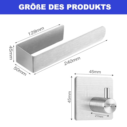 - يحتوي على: 1 قطعة رف مناشف فضي من الستانلس ستيل، الطول: 23 × 5 × 4.5 سم؛ 3 قطع خطافات فضية من الستانلس ستيل، الطول: 4.5 × 4.5 × 2.7 سم.