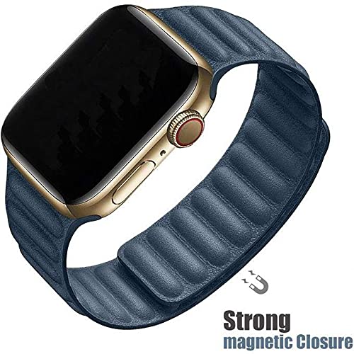 VPG - VPG حزام حلقة من الجلد الطبيعى مقاس38/40 مم إغلاق قوى مغناطيسي لسلسلة ساعات أبل الاصدار الخامس والسادس- ازرق، من في بي جي، للجنسين البالغين