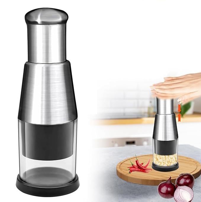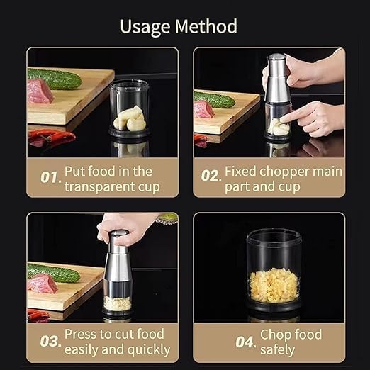 - Versatile Applications: Manual Pressed Chopper can quickly and effortlessly chop garlic, onion, potato, peppers, and more.nt, making it a durable addition to your kitchen tools.Its compact size makes it perfect for small kitchens or for on-the-go use.