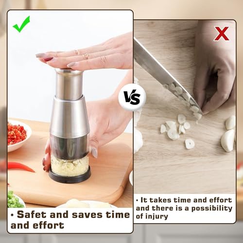 - Quickly Clean: Multi-Functional Manual Garlic Press is easy disassembling for speedy cleanup, simply finish cleaning under running water in 2 minutes, hand-pressed stainless steel kitchen crusher is also top dishwasher safety for added convenience.
