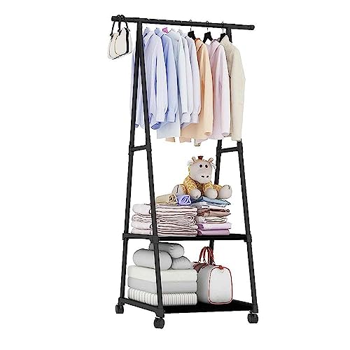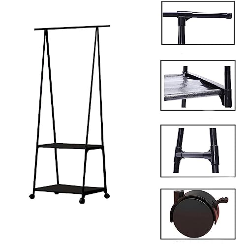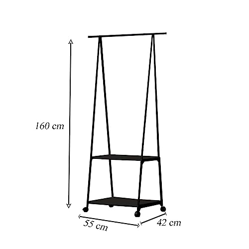 VR VETRINEINRETE - Metal Coat Stand for Clothes with Wheels 2 Shelves Wardrobe Display 160 x 55 x 42 cm (Black)
