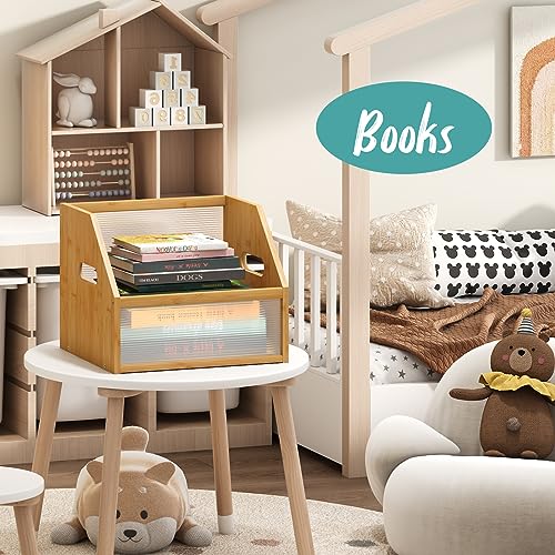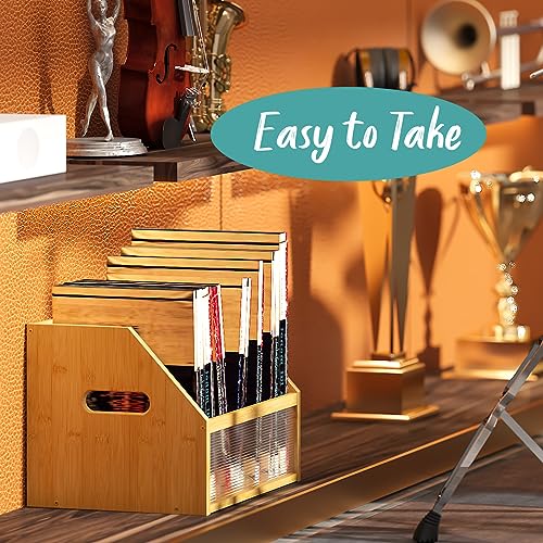 Vriccc - Vinyl Record Storage Box, Bamboo Wood Record Holder Storage, Magazine Book Album Display Rack, Stylish Desktop File Sorter Organizer for Home Office