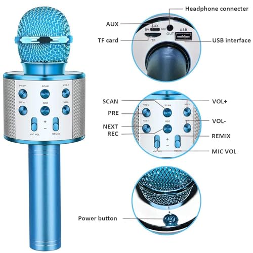 - Wireless & Multifunctional Design: Combines a microphone and Bluetooth speaker in one device for an all-in-one karaoke experience.