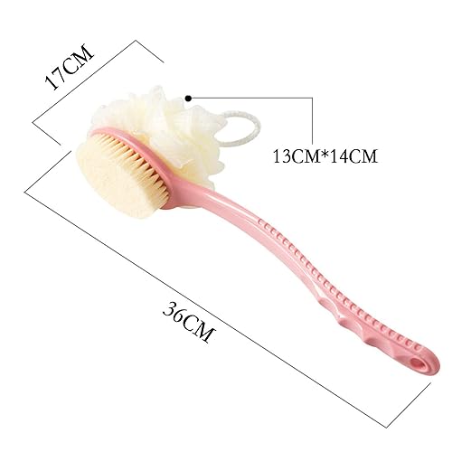 Vtrem - Vtrem 2 IN 1 Shower Brush with Soft Loofah and Bristles Bath Body Brush with Curved 36cm Long Handle Back Scrubber for Wet or Dry, Men & Women Body, Face and Spa Washing (Multicolor)