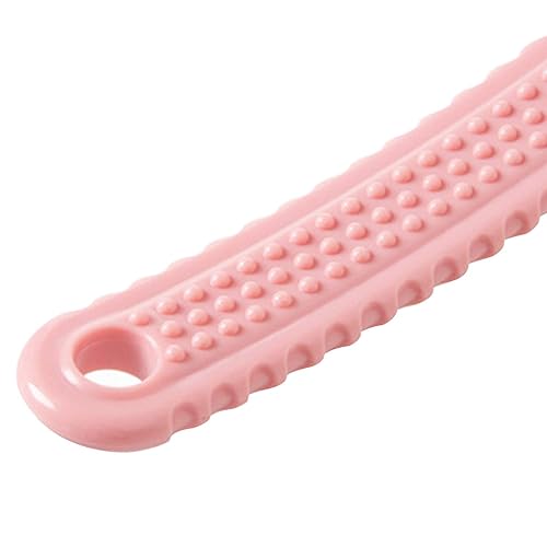 - Non-slip Design: Easy Grip and Cleaning": "The resin material handle with a frosted surface and bending design ensures a non-slip grip, while the hole at the tail allows for easy hanging and drying