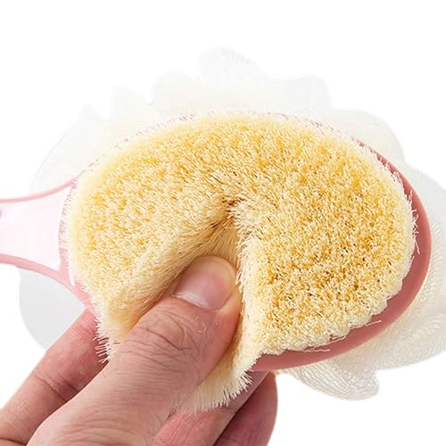 - Design: 2 IN 1 Double-sided Brush": "This shower brush features a double-sided design with both loofah and bristles, providing versatility for dry or wet brushing and added care for your skin