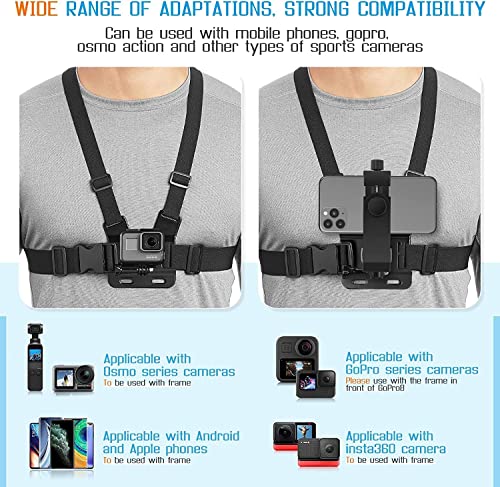 VTS - VTS Mobile Phone Chest Strap Mount GoPro Chest Harness Holder for VLOG/POV, with iPhone 13 Pro Max Plus,Samsung,GoPro Hero 9, 8, 7, 6, 5,OSMO Action